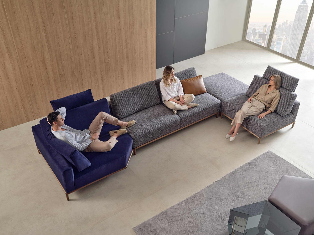 Its modularity allows for customization in terms of layout and detail, making Berlin fit any style and space. Its wide corner module offers extra space for comfort, acting as a chaise while its dynamic back support can be adjusted for a higher headrest.