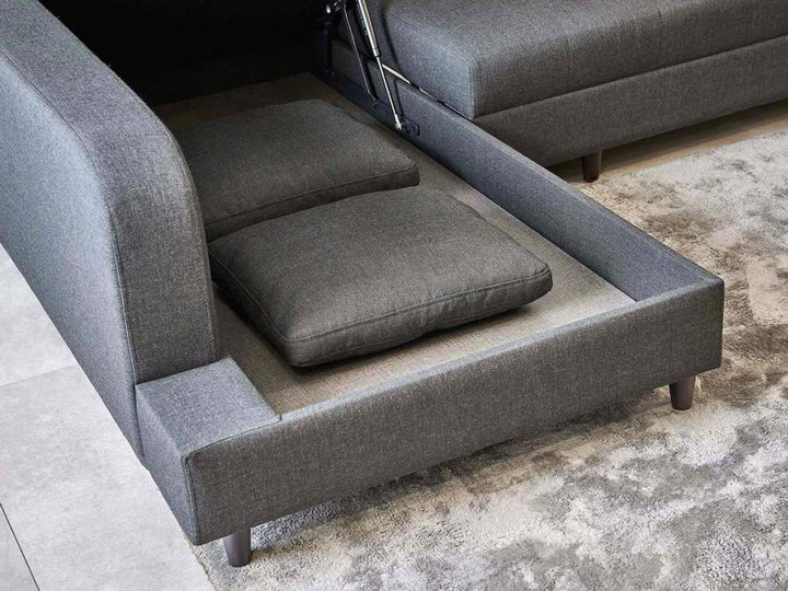 Biblio stelt u ook in staat om de ruimte productief te gebruiken door een opslagruimte aan te bieden onder de zitting en ook onder de chaise longue.