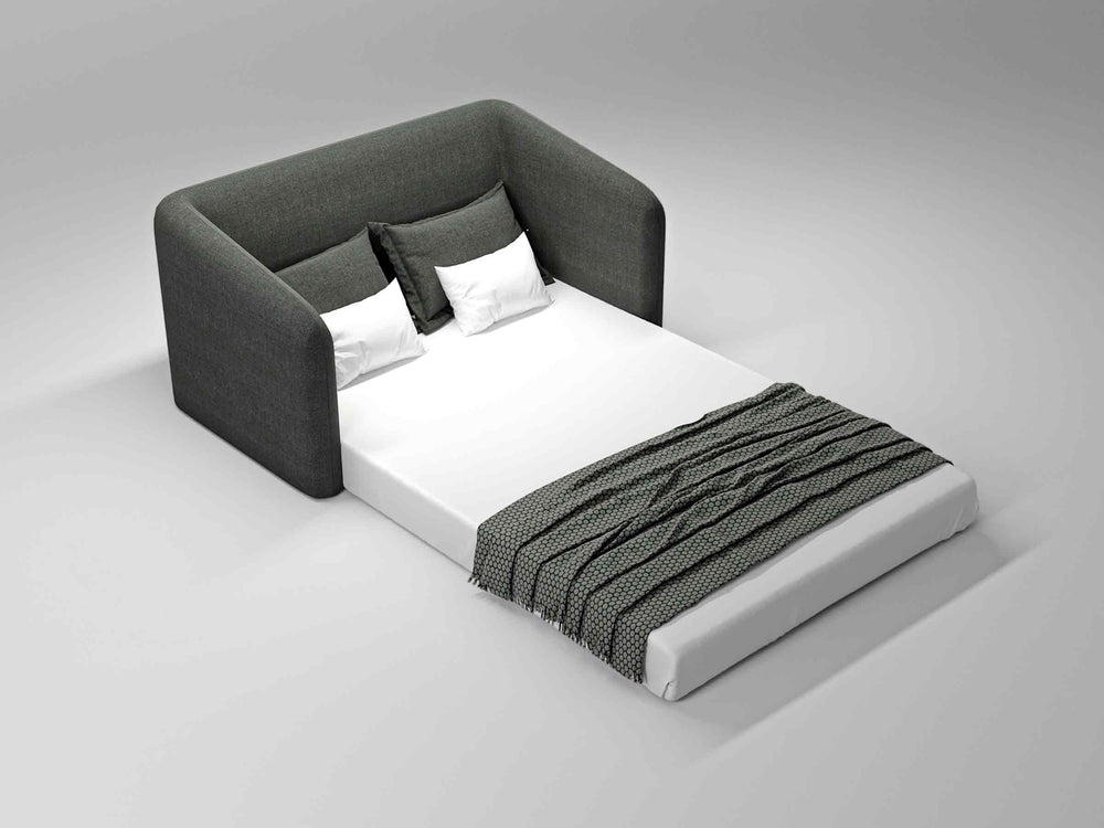 Met zijn comfortabele rugkussens nodigt Flip Sofa uit tot een gezellige zit en trekt hij de aandacht met zijn kenmerkende houding. Het verborgen vak onder het zitkussen kan worden geopend en verandert de bank in een tweepersoonsbed.
