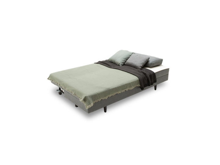 Kema Sofa biedt zowel een extra opbergruimte onder de ligmodule als kan worden omgebouwd tot een comfortabel bed met zijn eenvoudig uitbreidbare mechanisme.