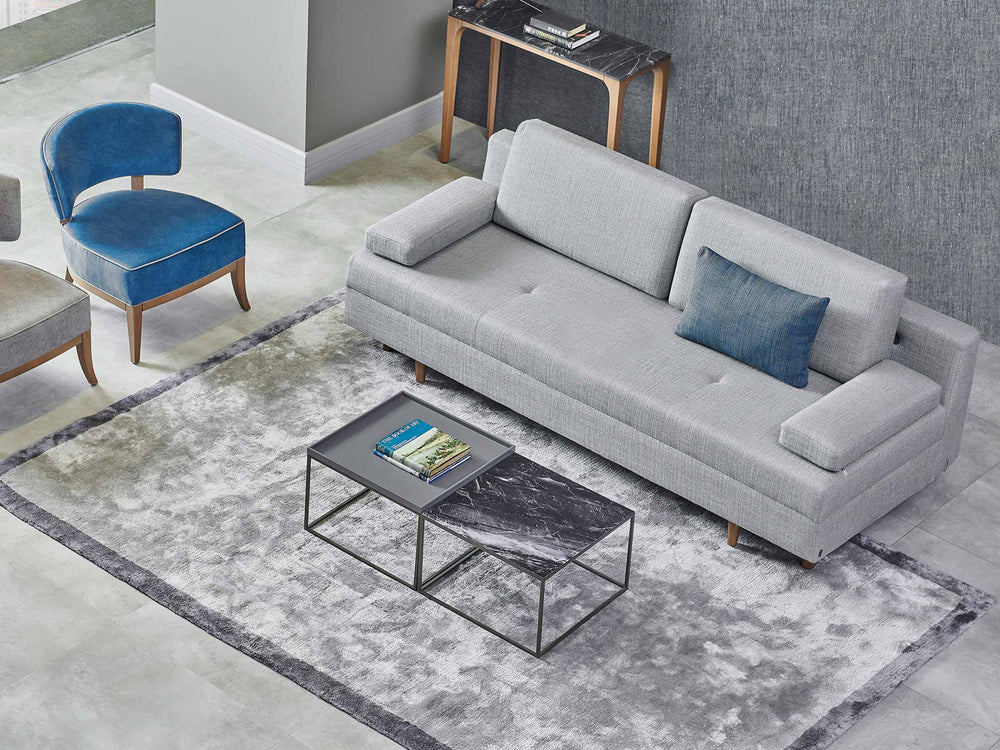 Kema Sofa biedt zowel een extra opbergruimte onder de ligmodule als kan worden omgebouwd tot een comfortabel bed met zijn eenvoudig uitbreidbare mechanisme.