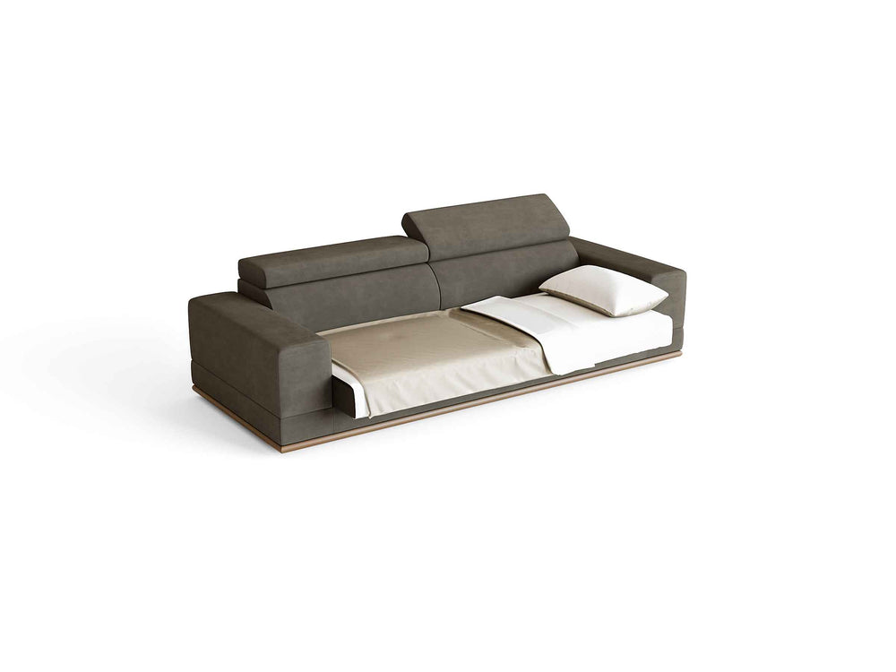 De Met Sofa biedt de mogelijkheid om een chaise longue en een slaapbank toe te voegen die ongeveer 20 cm uitschuift. Gebruikmakend van een mechanisme dat exclusief voor Lazzoni is gemaakt, ideaal om te ontspannen na een drukke dag als ligstoel of om gasten te laten overnachten.
