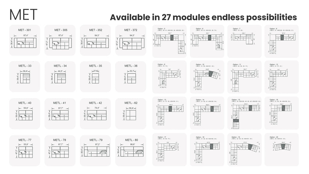 De combinatie van modulaire structuur en comfortabele zitgelegenheid van de Met Sofa wordt gecombineerd met een zwevend massief houten onderstel voor de ultieme moderne uitstraling. Het ontwerp creëert een ideale bank voor zowel het dagelijks leven als een uitnodigende ruimte als er gasten op bezoek zijn.