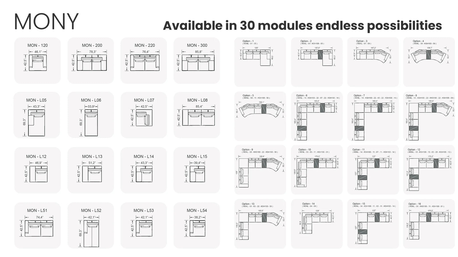 Tailor made designs to fit any space. Besides numerous standard sizes, Lazzoni offers fully custom alternatives. Modularity creates unique solutions for any home.