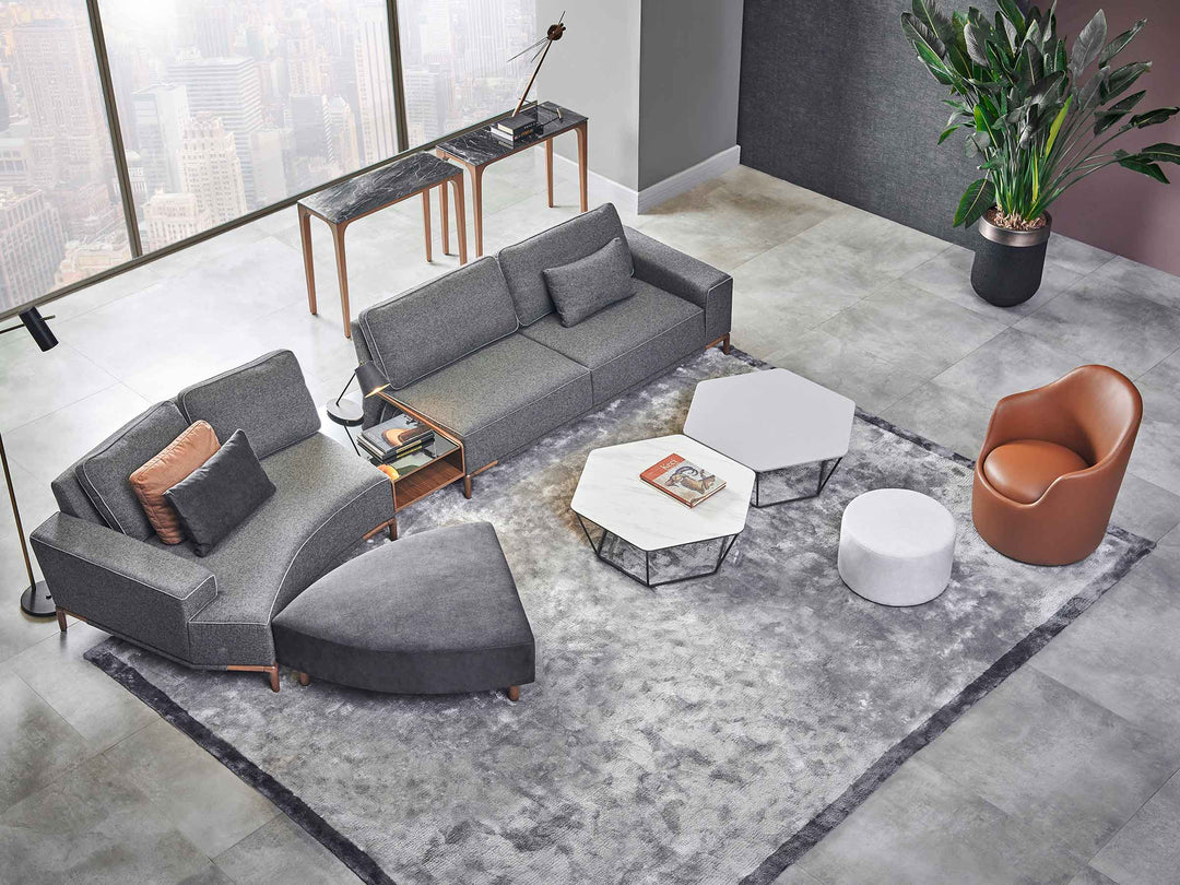 Je kunt 2 of meer Penta salontafels naast elkaar leggen en een compositie creëren dankzij de vijfhoekige vorm, of je kunt hem alleen gebruiken en je leefruimte chiquer maken.